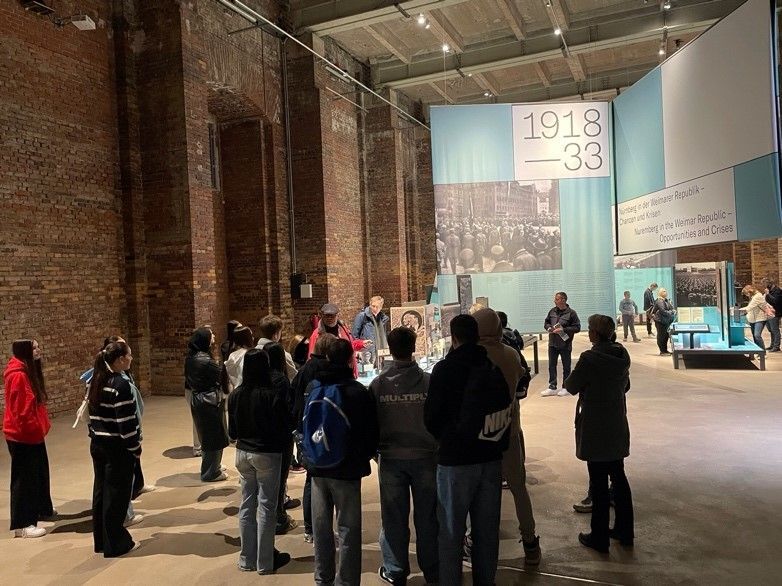 Die 8aG, 9aG und 9bM starteten am Donnerstag, den 20.03.2025, einen Ausflug zum Reichsparteitagsgelände in Nürnberg. Dort erhielten wir eine Führung durch die Interimsaustellung mit vielen interessanten Infos rund um die Zeit des Nationalsozialismus. Was waren die Reichsparteitage? Warum gerade Nürnberg? Und viele weitere Fragen wurden beantwortet. Anschließend wurde die nahe Umgebung des Nürnberger Bahnhofs ausgekundschaftet, bevor wir mit dem Zug wieder nach Rödental gefahren sind.