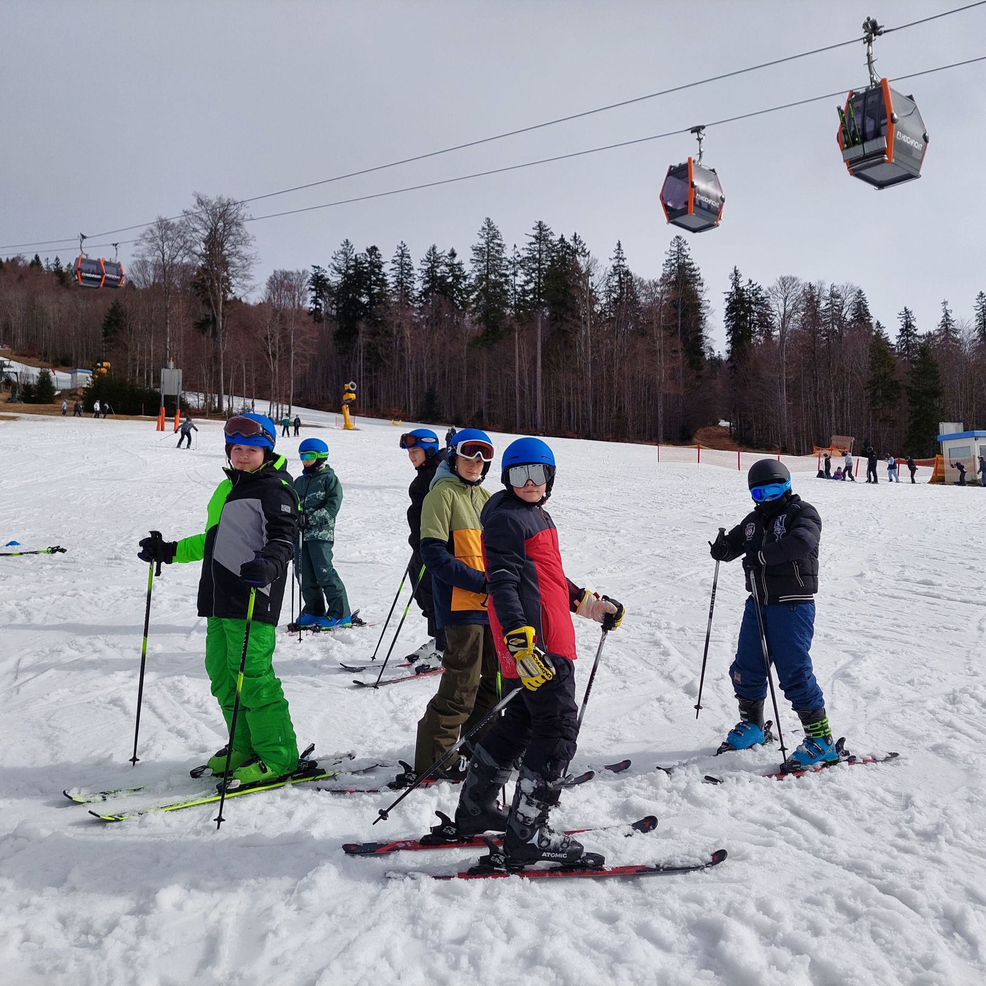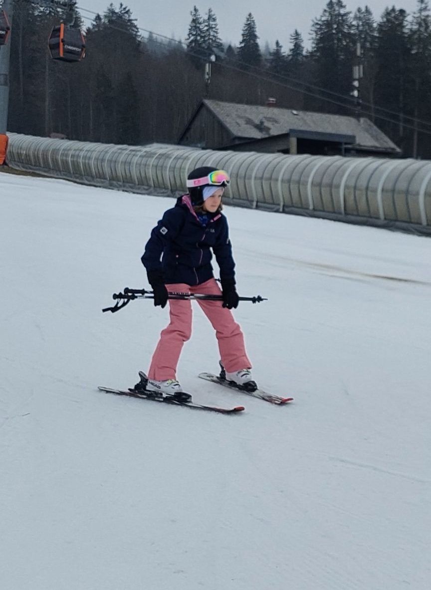 Als wir zur Mittagszeit in der Jugendherberge ankamen, gab es zuerst ein leckeres Essen. Danach bezogen wir kurz unsere Zimmer und machten uns schon bereit für unseren ersten Besuch der Skipiste. Das Anziehen der Skischuhe fiel vielen schwer und die Füße schmerzten.