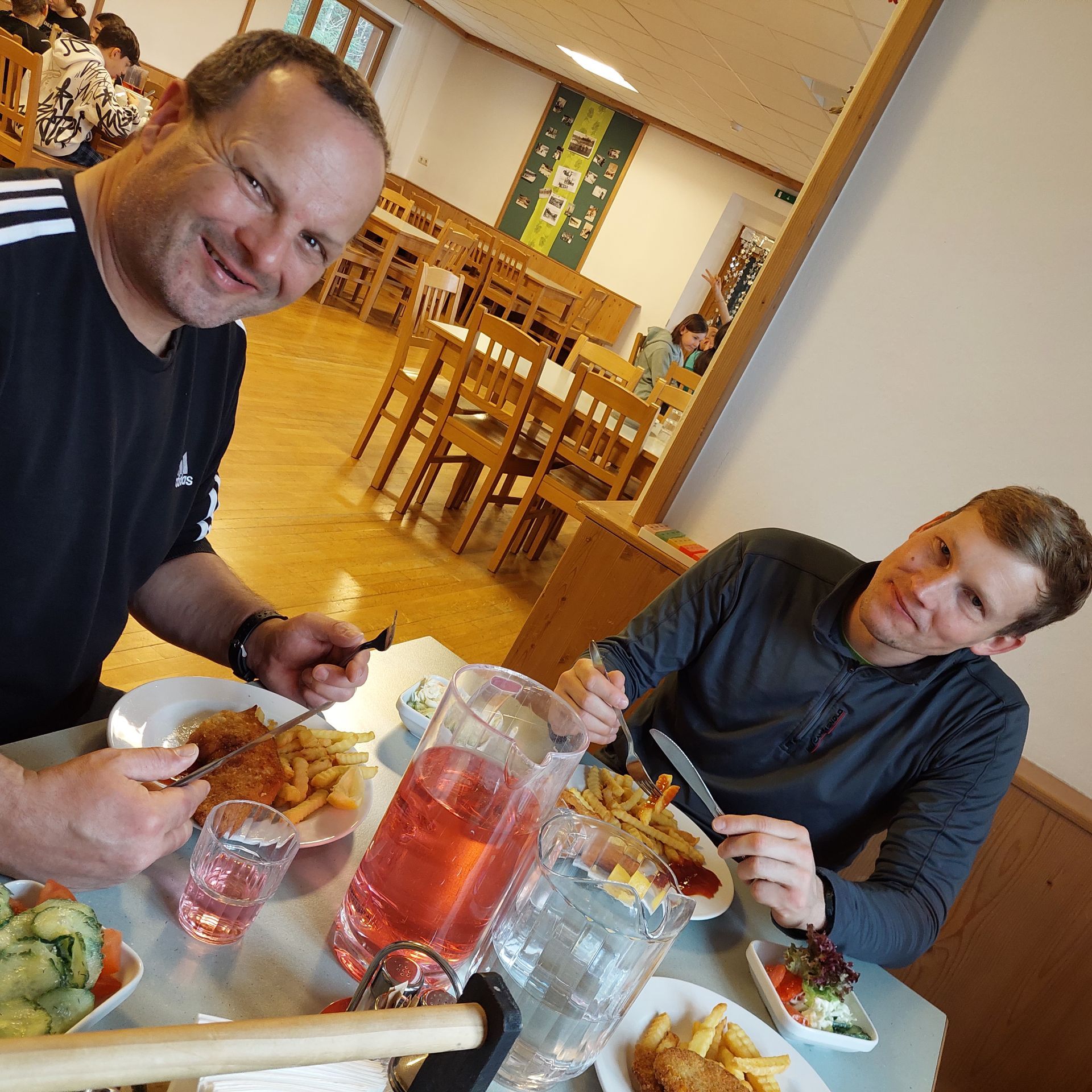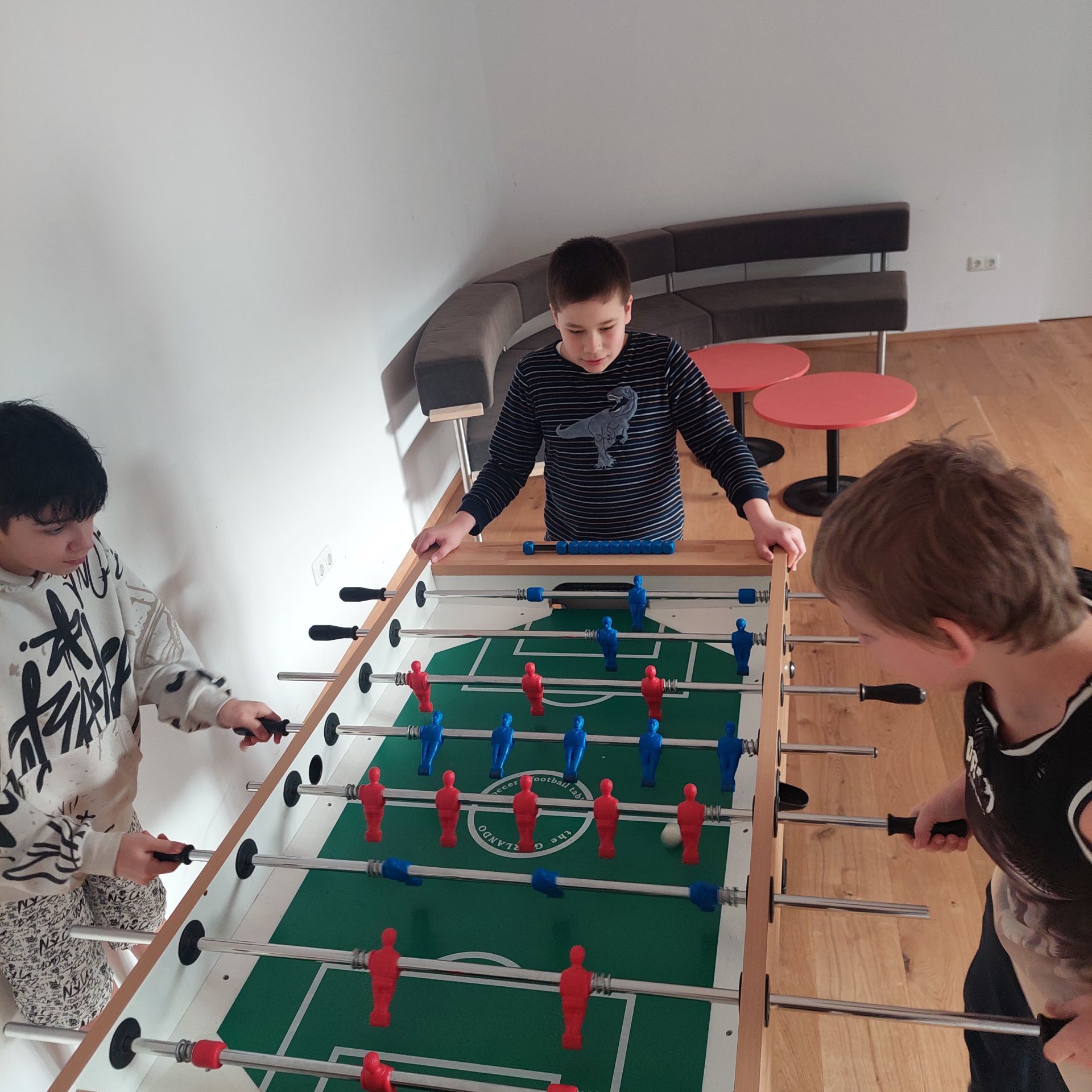 Geschafft kamen wir gegen Abend in unserer Unterkunft an. Dort hatten wir nach dem Abendessen die Möglichkeit Tischtennis, Kicker oder Karten zu spielen und die Sporthalle zu benutzen.