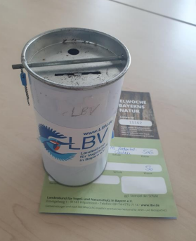 Umweltaktion vom LBV der Klassen 5aG und 5b Erfolgreich haben die Schüler der beiden 5. Klassen an der Sammelwoche vom LBV teilgenommen. Insgesamt haben die Schüler über 500€ gesammelt. Als kleines Dankeschön bekam jeder einen Vogelstift geschenkt. Da unsere Schule unter den ersten zehn Anmeldungen war, haben wir noch den Aktionstag „Nistkästen“ gewonnen. Die Schüler haben hierbei viel über unsere einheimischen Vögel gelernt, gerätselt, gebohrt und gehämmert. Naturschutz wird immer wichtiger und die beiden Klassen hatten sehr viel Freude beim Helfen.